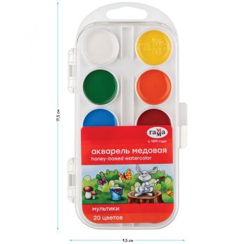 Набор: 20 цветов в кюветах. Объем кюветы - 3,5 см3. Без кисти.