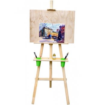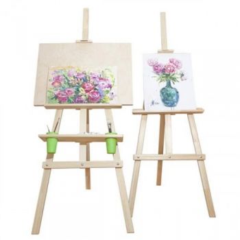 Разборная Лира из натурального дерева с дополнительной полкой, стаканами и планшетом. Поставляется в коробке (планшет упакован отдельно), в комплекте подробная инструкция по сборке. Этот мольберт удобно перевозить даже в общественном транспорте, занимает мало места при хранении, время сборки займет не более 5 минут.