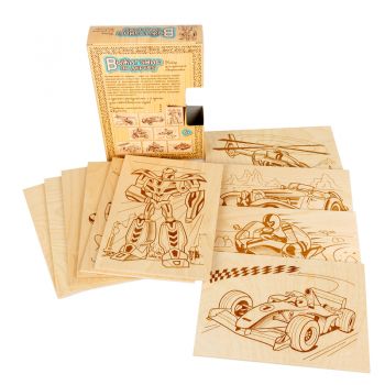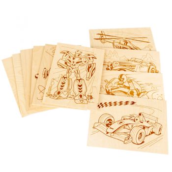 Доски изготовлены из сертифицированной деревянной фанеры, рисунки нанесены на доски специальной краской, не выделяющей вредных веществ в процессе горения.Состав набора: