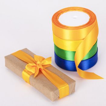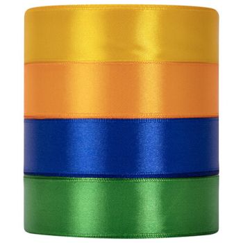 Изделие представляет собой набор из атласных лент, изготовленных из 100% полиэстера, с ткаными кромками на обоих краях. Кромка на краях лент выполнена с применением полиэстеровой нити. Ленты изготовлены с применением саржевого способа переплетения нитей. В набор входит 4 ленты желтого, оранжевого, синего и зеленого цветов шириной 25 мм (± 3%) и длиной 23 м, каждая из которых намотана на втулку из пенополистирола. Набор лент упакован в термоусадочную пленку, содержащую этикетку с краткой информацией о товаре.