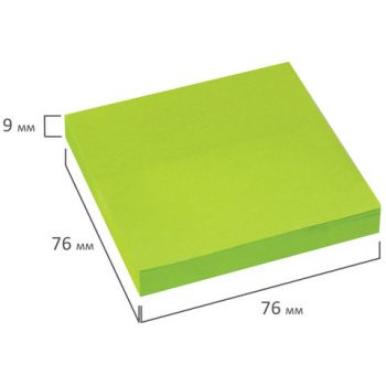 Стикеры зелёного неонового цвета в форме квадрата 76х76 мм состоят из 90 листов. Плотность бумаги составляет 75 г/м2. Клейкий слой - 35 Н/м. Легко клеятся к любой поверхности. Не оставляют следов. Упакованы в полиэтиленовую пленку.