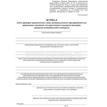 Журнал учёта проверок юридического лица, индивидуального предпринимателя